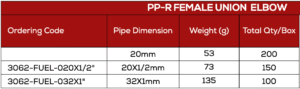 Previous Product Next Product PP-R Female Union Elbow Product Description – PP-R Female Union Elbow Model Number – BT 3062 SKU: BT 3062 Category: PPR Fittings Dimensions Related products Quick View Quick View PPR FittingsPP-R Short Clamp A Read more Quick View Quick View PPR FittingsBypass Bend Read more Quick View Quick View PPR FittingsPP-R Reduced Elbow Read more