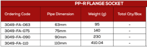 Previous Product Next Product PP-R Flange Socket Product Description – PP-R Flange Socket Model Number – BT 3049 SKU: BT 3049 Category: PPR Fittings Dimensions Related products Quick View Quick View PPR FittingsPPR Coupling Read more Quick View Quick View PPR FittingsPP-R Male Pipe Plug Read more Quick View Quick View PPR FittingsPP-R Reduced Elbow Read more
