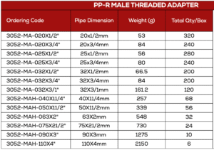 Product Description – PP-R Male Threaded Adapter