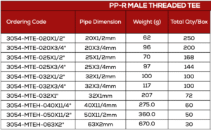 Previous Product Next Product PP-R Male Threaded TEE Product Description – PP-R Male Threaded TEE Model Number – BT 3054 SKU: BT 3054 Category: PPR Fittings Dimensions Related products Quick View Quick View PPR FittingsPPR Coupling Read more Quick View Quick View PPR Fittings5 Way Type PP-R TEE Read more Quick View Quick View PPR FittingsPP-R Short Clamp A Read more