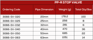 Previous Product Next Product PP-R Stop Valve Product Description – PP-R Stop Valve Model Number – BT 3066 SKU: BT 3066 Category: PPR Fittings Dimensions Related products Quick View Quick View PPR FittingsPPR 45*c Elbow Read more Quick View Quick View PPR FittingsReducing Socket Read more Quick View Quick View PPR FittingsPP-R Reducing TEE Read more