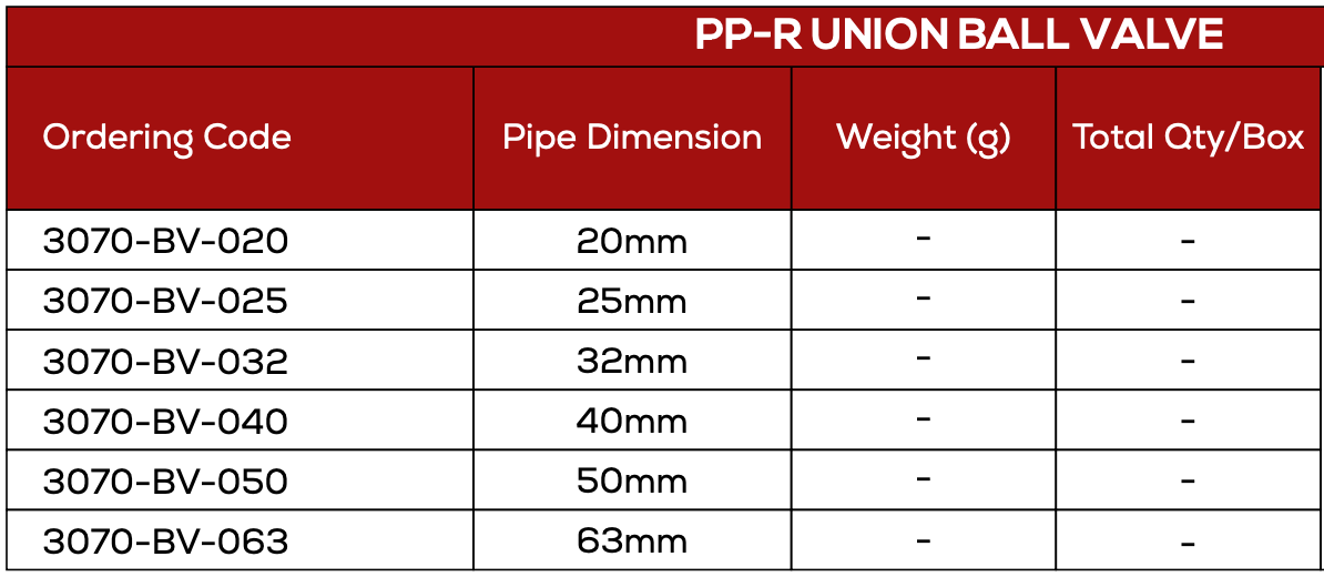 Product Description – PP-R Union Ball Valve